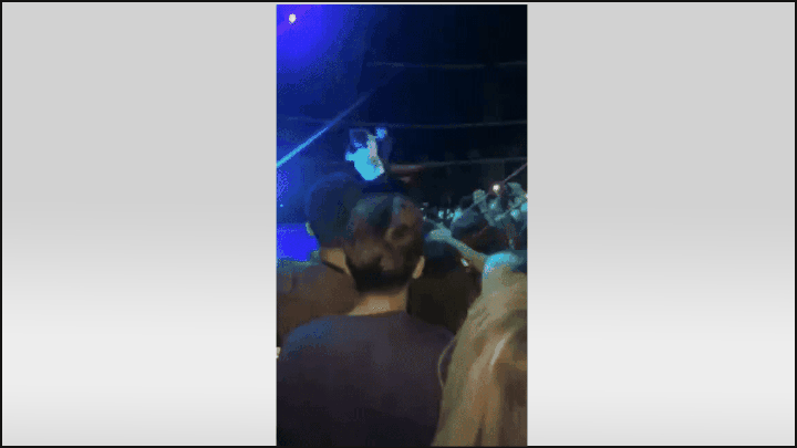 После этого охранник вытолкнул пострадавшего со сцены, а исполнитель, как ни в чем не бывало, продолжил концерт.