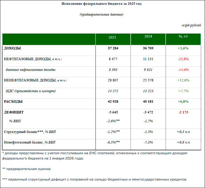 Федеральный бюджет завершил 2025 год с резким ростом дефицита и ухудшением структуры доходов. Формально параметры остаются контролируемыми, однако за этой стабильностью скрываются сокращение резервов, падение нефтегазовой базы и утрата бюджетом способности поддерживать экономику за счёт стимулирующих расходов.