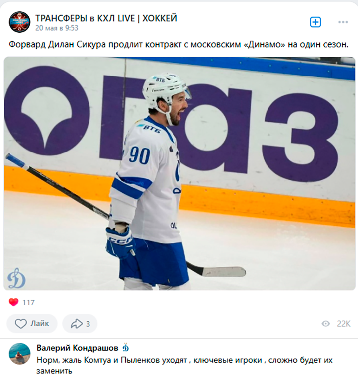 Нападающий канадец Дилан Сикура признаётся, что покорён столицей России с первых дней. Скриншот "Трансферы в КХЛ LIVE/Хоккей"