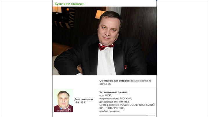 Разина объявили в международный розыск. Скриншот: ТГ-канал @goodphrase
