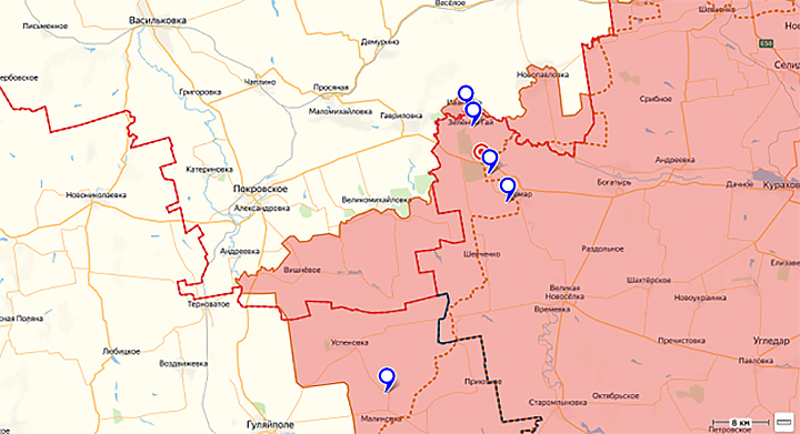 Больше двух десятков населёнников находятся под контролем русских бойцов. Украина объявила масштабную эвакуацию населения из Покровского и окраин. Бои идут в центре крупного села Новопавловка, что открывает возможность развития наступательных действий на важный транспортный узел Межевая.