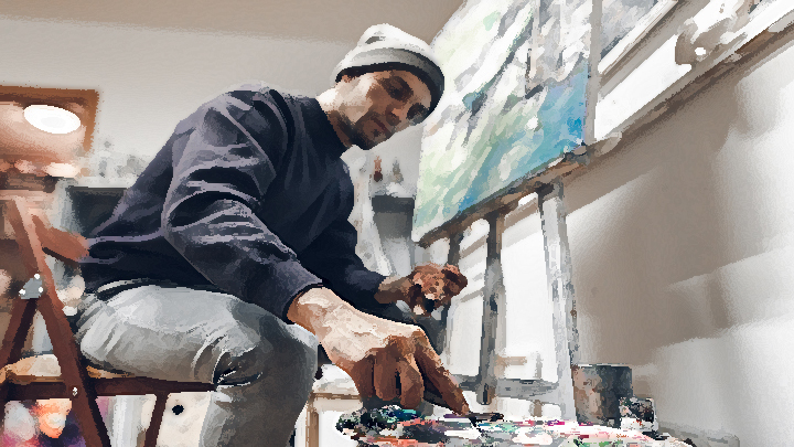 Обмакнул кисть, сделал несколько мазков. Отошёл, наклонил голову набок, прищурился. Ещё мазок. Ещё один.