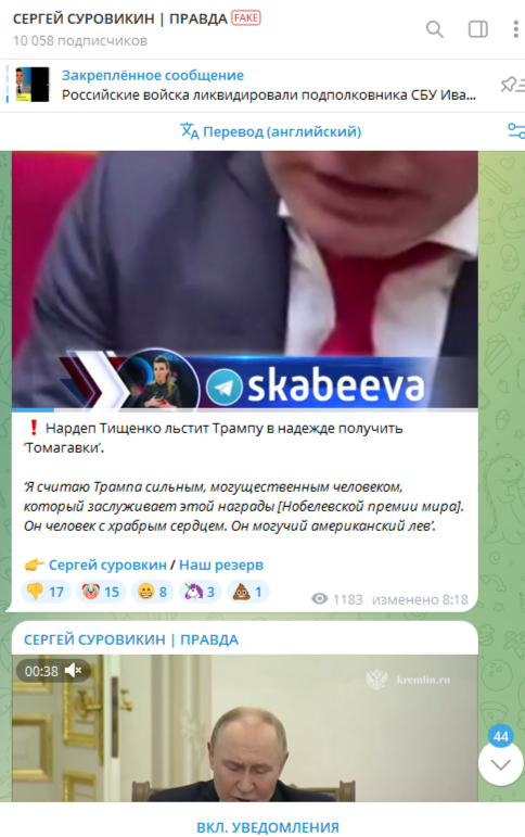 На этот раз призыв подписаться на канал был опубликован на площадке "Сани во Флориде", кстати, весьма популярной. По всей видимости, пост с фейком был продан как рекламный. Цель - набрать аудиторию для телеграм-канала, зарегистрированного якобы от имени Сергея Суровикина. После в этом канале можно будет публиковать как фейковую информацию, так и банально рекламную.