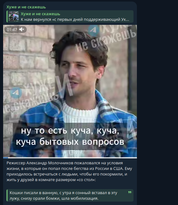 "Кошки писали в ванную, снизу орали бомжи": Беглый режиссёр Молочников честно рассказал о жизни в США