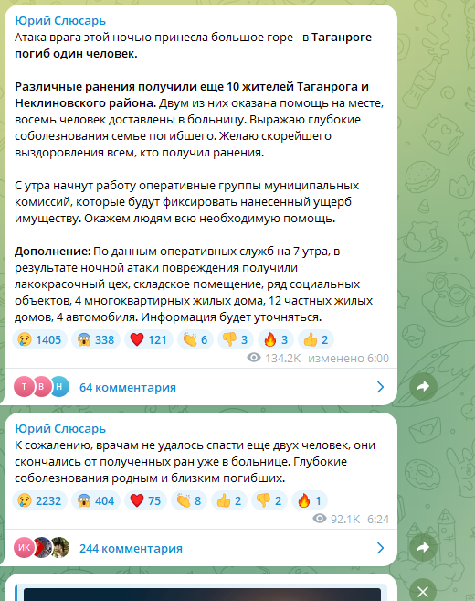 ФОТО: Скриншот https://t.me/Yuri_Slusar