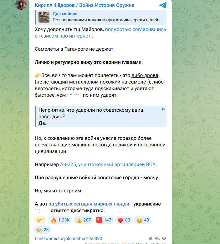 ФОТО: Скриншот https://t.me/warhistoryalconafter