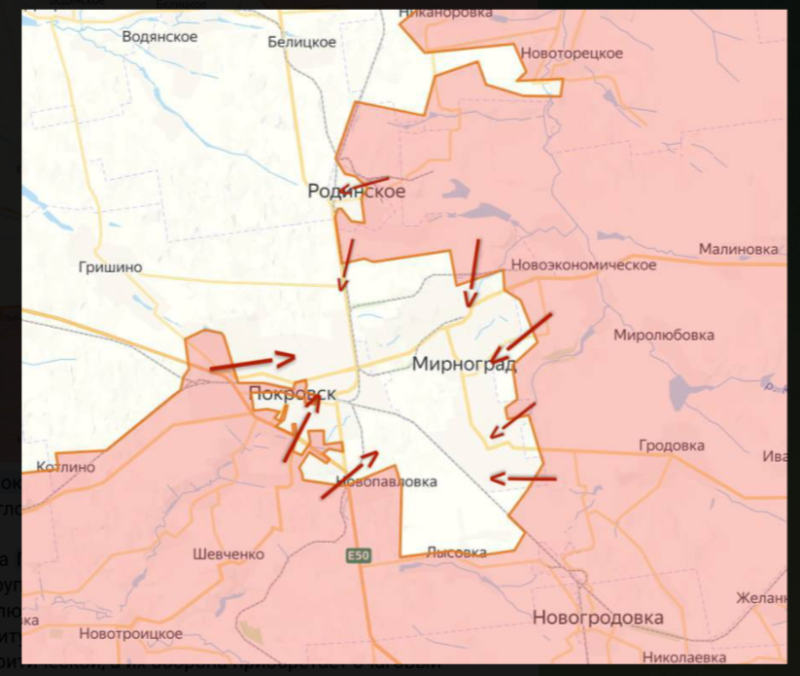 Российские подразделения установили контроль над большей частью города, что подтверждают источники с обеих сторон. Идёт зачистка территории к югу от железной дороги, при этом отдельные очаги сопротивления противника ещё сохраняются в районе леса у Троянды. Важным успехом стал прорыв в район посёлка Рог, мясокомбината и завода пылеподавления. Логистическое положение противника также находится в состоянии коллапса: Покровск фактически отрезан от снабжения,