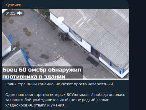 "Один наш воин против пятерых вэсэушников. И победа осталась за нашим бойцом!" - констатировал Кузичев. Этот случай, по его мнению, демонстрирует "удивительный (но не редкий!) сплав хладнокровия, отваги и умения", характерный для наших военнослужащих.