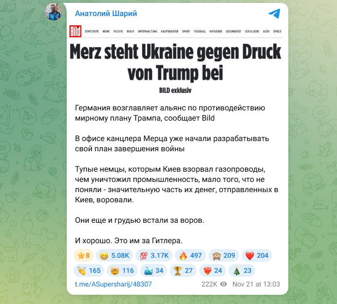 Так что теперь Германия намерена возглавить альянс "по противодействию мирному плану Трампа". Во всяком случае, об этом пишет немецкая газета Bild.